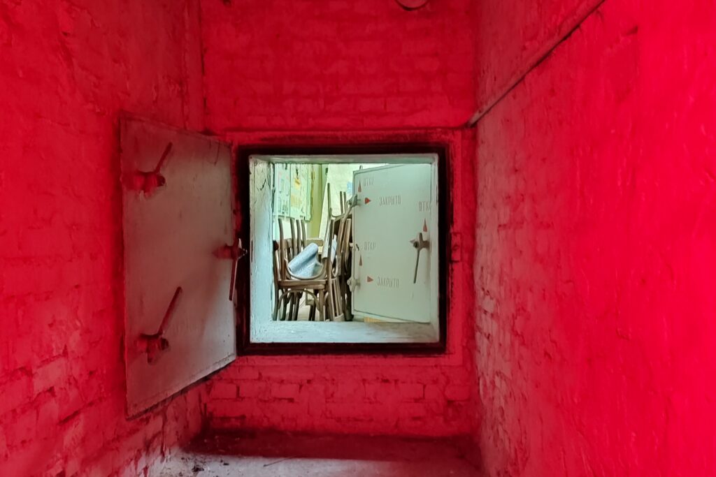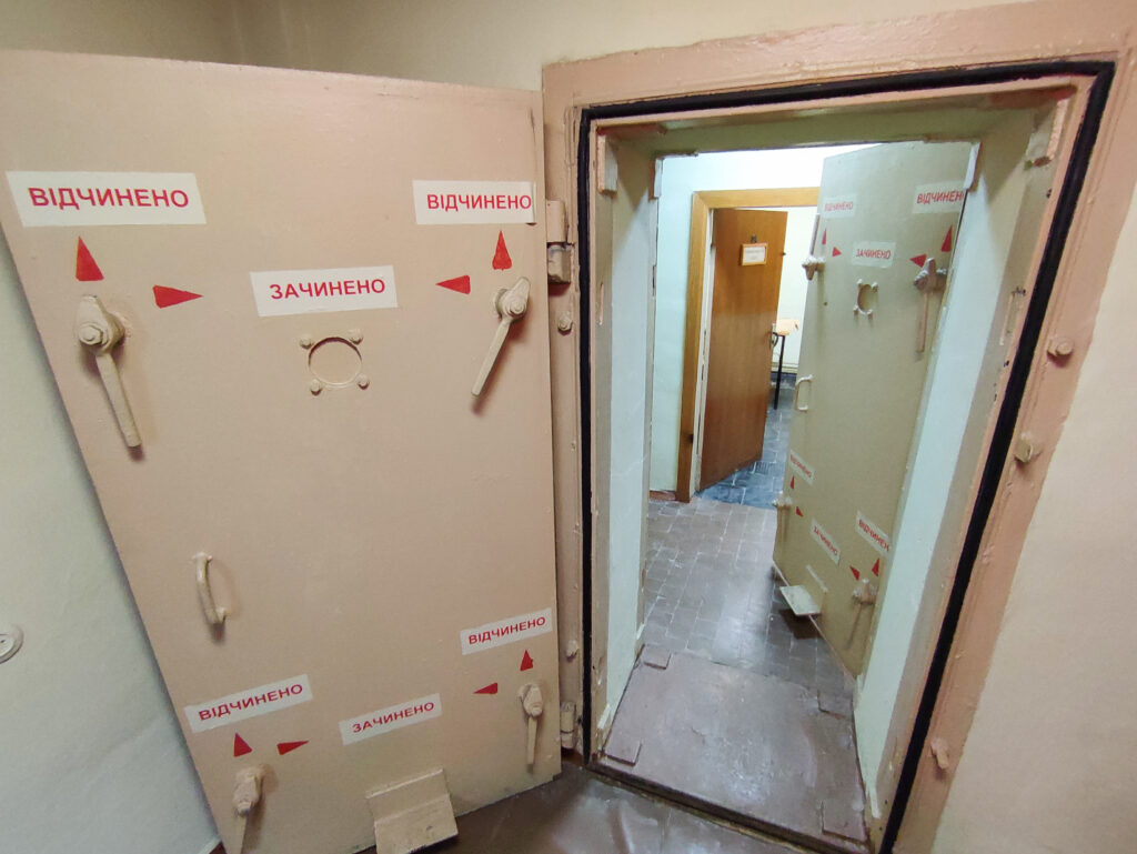 Сховище розподілено на дві герметичні частини ось такими гермодверями,за котрими було відділення зв’язку