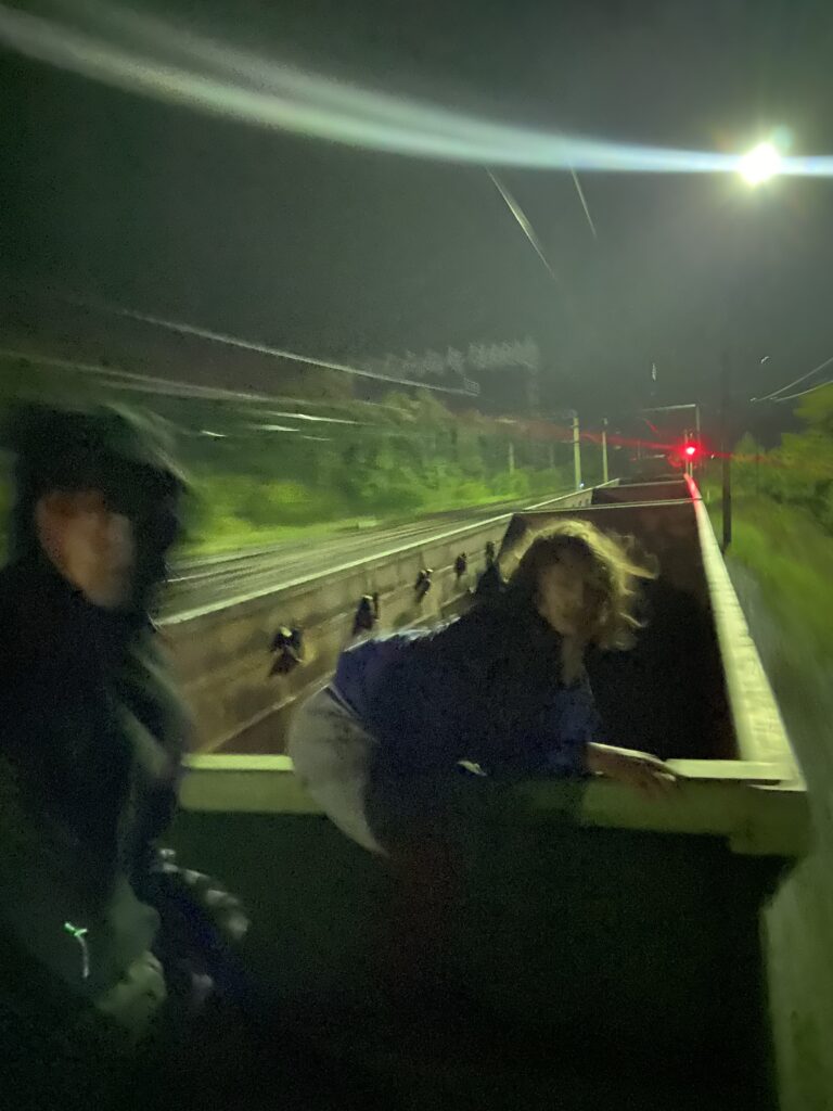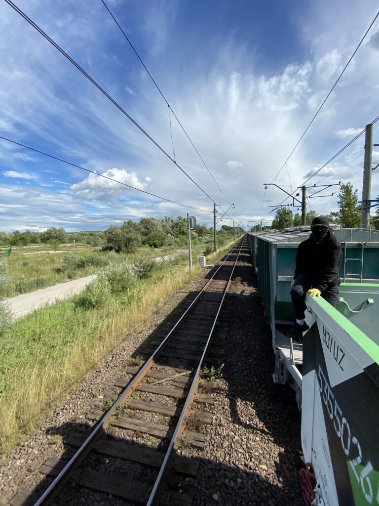 Виспавшись ми побачили, що ми знову всередині составу, нам прицепили дофіга вагонів, а спереді вже стоїть локомотив, ще й в тому напрямку, що нам потрібно. Прям перед відправленням стався якийсь трабл з одним із нашої команди, йому треба було конче у Київ, ще один пішов його проводжати, тож нас залишилось у вагоні троє. Коли вони пішли, подивились обстановку, дали нам знати, що по парку не бігають злі монтєри і вохри, а саме головне – для нашого состава відкритий вихідний світлофор. Перемога, їдемо далі.