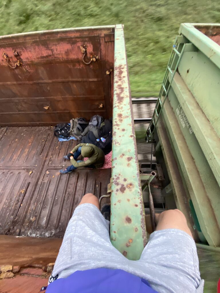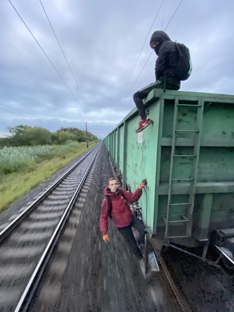 Локомотив приїхав під состав, десь обід. Перший наш чекпоінт – Фастів. З Києва туда їздять пусті полувагони, а через дощ вони ще й мокрі. я зрозумів, що то буде біда, тому в швидкому порядку ми вкрали матрас (певно в якогось бомжа біля гаражного кооперативу) та закинули його в вагон. Потяг відправився. По Києву їхати красиво звісно, но до фастова я спав як труп, хоча і після Фастова також.